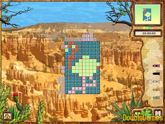 Fai il giro per il mondo e scopri la fauna esotica. Ricostruisci misteriose immagini di animali nascoste dietro delle griglie riempiendo ogni quadratino col colore esatto suggerito dai numeri. Usa l'intuito e risolvi questo coloratissimo gioco enigmistico in più di 72 griglie divise tra 8 aree geografiche quali Europa, Oceania, Polo nord, Pacifico ecc.