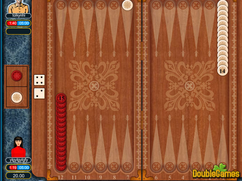 Il backgammon è un gioco per due giocatori, giocati su un'asse consistendo nei venti-quattro i triangoli stretti punti chiamati. I triangoli alternano a colori e sono raggruppati in quattro quadranti di sei triangoli ciascuno. Questo tipo di backgammon richiede pensare sostanzioso strategico e tattico. L'oggetto del gioco è il movimento tutti i controllori nella sua propria asse di casa e li porta poi via. Il primo giocatore di portare via tutti i controllori vince il gioco. Lei è abbastanza intelligente per questo gioco? La prova ciò!