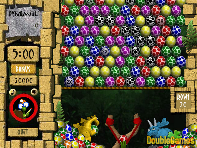 Lei è pronto per il gameplay rapido in linea in quest'enigma buffo, Dynomite? Trattare le uova di dino per rompere quest'enigma sfidante, ma tenere via da loro madre poiché può essere molto stretta! Se qualcosa la delude, andrà matto e ha messo il suo piede grande giustamente su lei! Quest'enigma di azione frenetico la fa chiarisce il suo playfield da questi mucchi di uova di dino colorati. Piacere questi livelli sfidanti e questi modi di gioco diversi! Lei ha una probabilità unica per giocare Dynomite in linea a DoubleGames!