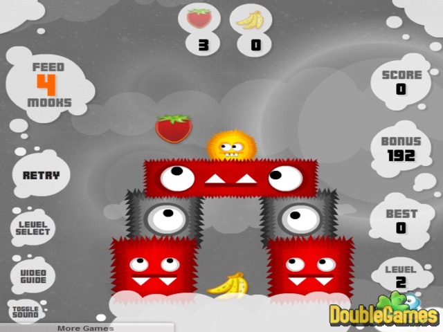 Ci sono moltissime creature affamate nel nuovissimo gioco casual veramente carino intitolato Feed the Mooks. Il Tuo scopo è pulire lo schermo del gioco di tutti i mook, tirando le frutte del colore giusto a loro oppure guidandoli al cibo. Tutto questo è veramente semplice, ma qualche volta devi ricordare le regole della fisica per guidare i mook al cibo. Ogni livello divento sempre più difficile e nello stesso tempo dare ai mook da mangiare è anche molto sfidante. Gioca al gioco online gratis Feed the Monks e riceverai un sacco di piaceri!