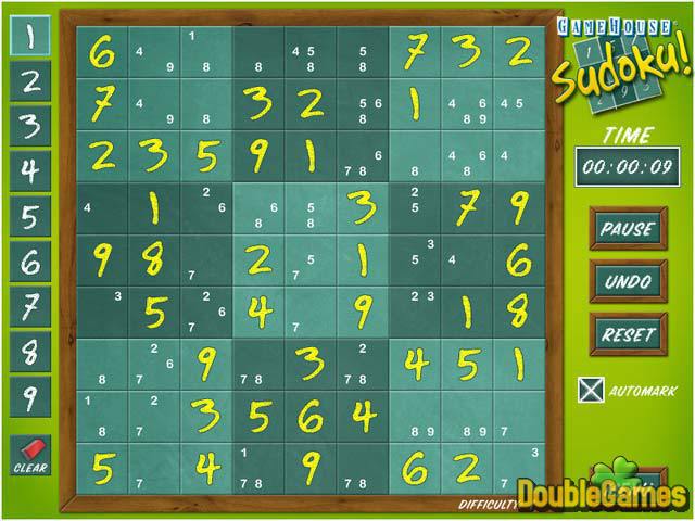 GameHouse Sudoku è un coinvolgente rompicapo logico che metterà alla prova la tua mente! Risolvi il mistero dei numeri posti sulla griglia usando il ragionamento e la pazienza (non è richiesta alcuna abilità). C'è solo una regola: in ogni colonna, in ogni riga e in ogni regione, ogni numero da 1 a 9 deve comparire una volta sola. Metti a dura prova la tua mente!