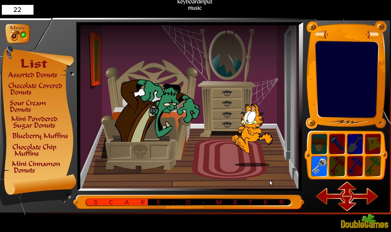 La casa perseguitata? Oh, questo è esattamente il genere dell'avventura che lei cercano? Giocare il nuovo Garfield di gioco in linea Caccia di Spazzino Paurosa! Lei tutto ha essere completamente piaciuto dal gioco di avventura in linea: il carattere buffo amato, le posizioni numerose di esplorare ed il grande presente nella fine! Garfield di giunzione, insieme lei non sarà spaventato! E ricerca attentamente le cose chieste. Usare le chiavi di freccia per muoversi e non dimenticare di visitare ogni stanza. L'atmosfera che spaventa la presenterà il grande passo-tempo!