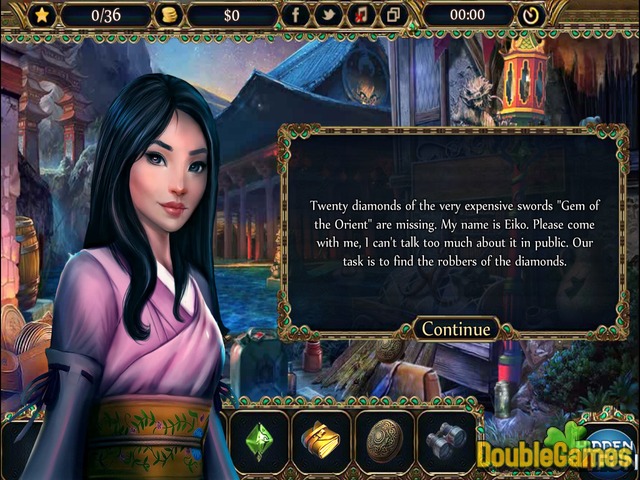 Perla d'Oriente ' è uno della spada del samurai più famosa nella storia giapponese. Ieri le sentinelle della spada notato che mancavano venti diamanti. Così, hanno deciso di creare una strategia segreta come agire segretamente e per organizzare un'indagine perfetta per controllare tutti i sospetti. Giovane ragazza Eiko è stato scelto per questo lavoro. Vi aiuterà a lei? Poi giocare nuovi oggetti nascosti online gratis gioco Gem Of The Orient.