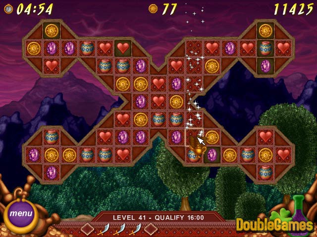 Fai che la leggenda diventi realtà in questo avventuroso gioco di abbinamenti! Intraprendi un viaggio esotico nelle terre di Aladino e cimentati nelle avventure proposte! Tanti potenziatori ti aspettano e dovrai essere tu a trovarli. Potrai utilizzare anche le pozioni magiche per attivare alcuni potenziatori o collezionare monete vendendo oggetti preziosi al negoziante della città in modo da aumentare la tua forza. Vola in queste terre al di là di ogni immaginazione oggi stesso!