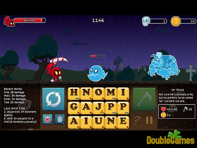 Lettera Quest è un RPG a turni dove i giocatori attaccano mostri dalle parole di ortografia. Ma attenzione, i mostri possono reagire creando diverse tessere come veleno, peste, pietra e turbine. Possono anche rubare la vostra salute, curarsi, usare attacchi critici e molto, molto di più! Aiuta l'adorabili mietitori Grimm e Rose sconfitta mostri, fantasmi, coniglietti malvagi e altro ancora utilizzando il potere delle parole! Esplora cinque aree, ognuna dotata di musica e arte unica tracce. Non dimenticare di aggiornare il tuo libri, pozioni, oggetti speciali e armi per aiutarvi nel vostro cammino.