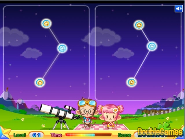 C'era una volta due scimmie buffe hanno scoperto un telescopio! Fortunatamente, hanno deciso di usarlo saggiamente! Lei deve aiutarli in un in Collegamento di Stella di gioco nuovo carino ed emozionante in linea! Unire le scimmie e cominciare a collocare le stelle ed i corpi stellari nel cielo nella posizione giusta. Più veloce ed il più con precisione lei esegue l'incarico, più più l'indica prenderà e le probabilità migliori di andare al prossimo livello che lei avrà! Piacere il Collegamento di Stella di gioco, lo giocando proprio ora e si divertire! Buona fortuna!