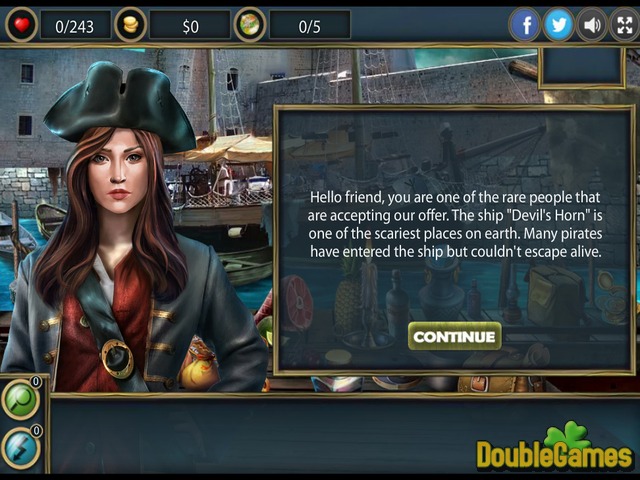 Benvenuto al nuovo gioco di oggetti nascosti online gratis sotto il titolo The Devil's Horn! La nave ' corno del diavolo ' è conosciuta come uno dei posti più spaventosi sulla terra. Così molti pirati sono già entrati questa nave ma non sono mai sono in grado di fuggire vivo. Il vostro compito è quello di rivelare tutti i segreti e capire la verità. Siete abbastanza coraggiosi da esplorare la nave ha detta? Quindi iniziare a giocare gioco online gratis adesso e salvare il giorno. Buona Fortuna!