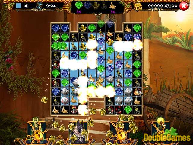 Nella terra dei faraoni, dove l'antico Egitto è la forza più potente del mondo, l'equilibrio di potere tra bene e male è sotto minaccia. Forze oscure hanno rapito la bella Iset alta sacerdotessa e hanno intenzione di rovesciare i Faraoni con l'aiuto di un misterioso manufatto e la potenza di Ra - il sole Dio! Come guardia del Faraone, imbarcarsi in una missione pericolosa e pericolosa per salvare la sacerdotessa. Viaggio attraverso l'Egitto, tra le piramidi e templi! Ricca di premi unici, gloriosi gemme e 100 livelli di puro gioiello corrispondenti divertimento, Treasures of Egypt è più sorprendente che Cleopatra e più pericoloso di una maledizione egizia!